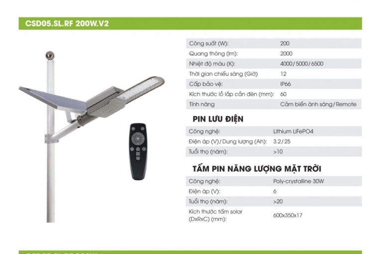 Đèn LED Chiếu sáng đường Năng lượng mặt trời Rạng Đông – CSD05.SL.RF 200W.V2