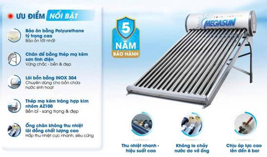 Máy nước nóng năng lượng mặt trời Megasun dòng Ống chân không lõi đồng VCP