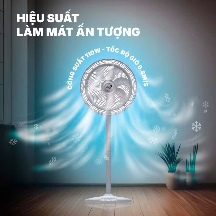 - Gió mạnh gấp 1.7 lần quạt thường, thổi xa đến 13m.